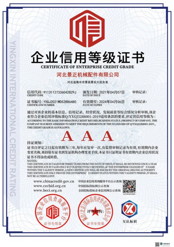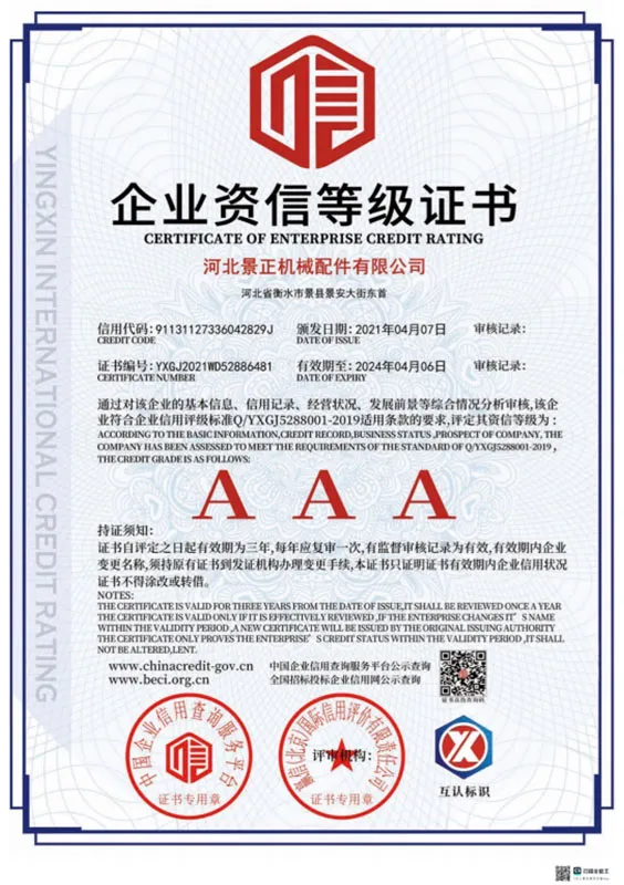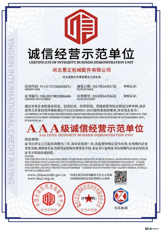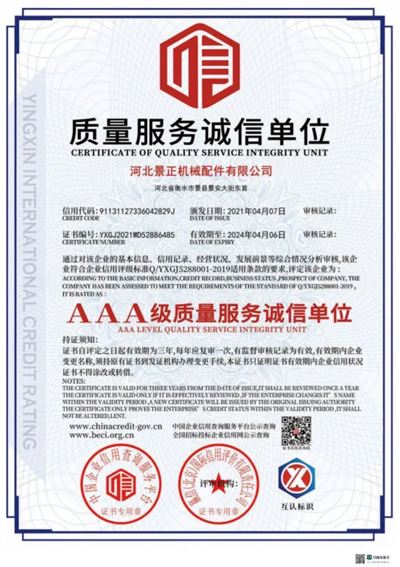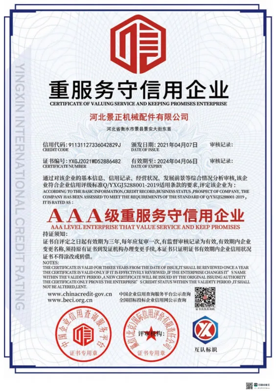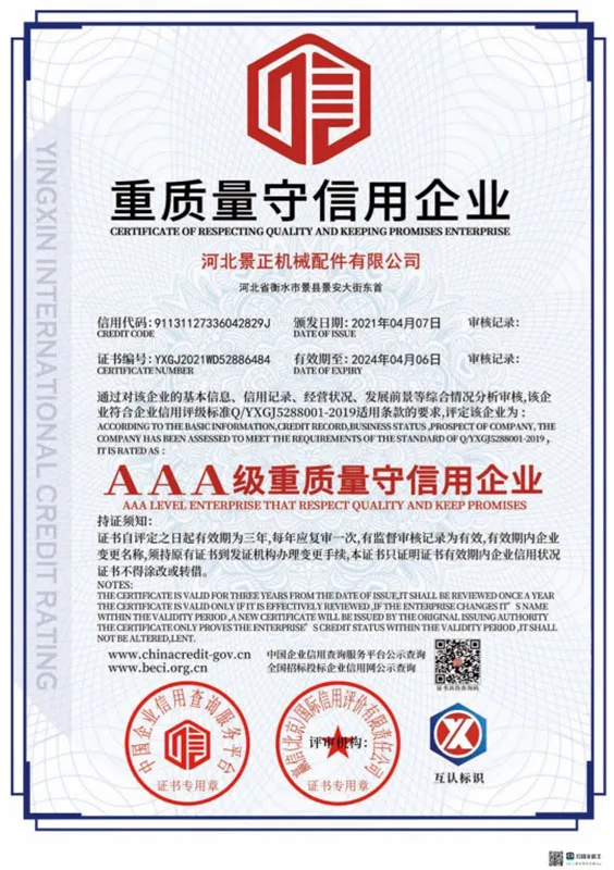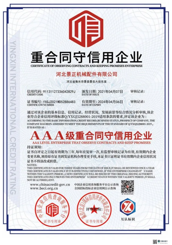«Честность в бизнесе» — неизменный принцип Цзинчжэн Механические Аксессуары, а «доверие клиентов» — краеугольный камень ее существования. С момента своего основания компания неизменно опирается на сложные производственные процессы, высокое качество продукции и комплексную систему управления качеством для всесторонней стандартизации всех этапов производства – от закупки сырья и производства продукции до продаж и доставки, – обеспечивая эффективность и организованность. В дальнейшем компания Цзинчжэн Механические Аксессуары будет и впредь придерживаться принципов открытости и сотрудничества, готовая к тесному сотрудничеству с коллегами из всех слоёв общества, как внутри страны, так и за рубежом, чтобы совместно исследовать новые пути развития и создавать новые славные достижения в отрасли!